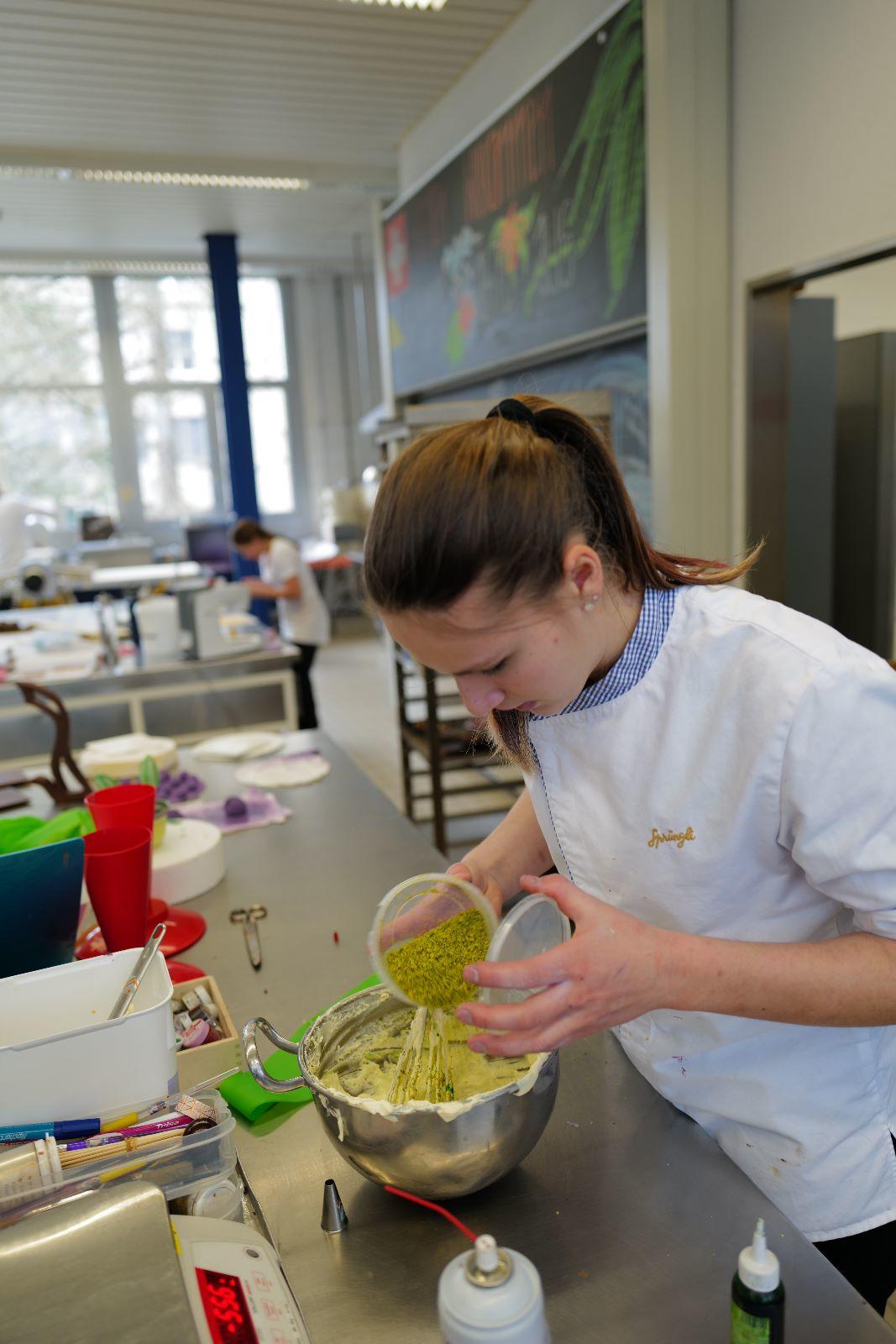 Es riecht nach Schokolade, der Zucker knirscht unter den Füssen und das Mehl stäubt in der Luft. Merlin Lichtensteiger, Lernende im 2. Jahr zur Bäckerin-Konditorin-Confiseurin EFZ verleiht ihrer süssen Kreation den letzten Schliff, bevor die besten Teilnehmenden am internationalen Wettkampf gekürt werden.