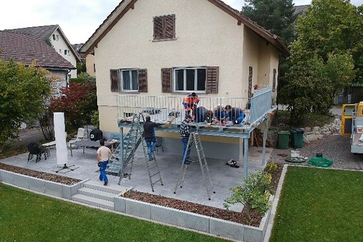 Auch der Kunde freut sich über seinen neuen Balkon. Die Zusammenarbeit mit den jungen Fachkräften erlebte er als sehr angenehm und professionell. «Die Tage, an denen ich selbst auf der Baustelle war, haben richtig Freude gemacht. Schön, wenn Lernende Verantwortung übernehmen und am Schluss ein fertiges Produkt hervorbringen», sagt er. Adrian Wymann, Luca Stapfer, Francesco Paterlini und Marcel Dubi haben die Projektleitung und Montage erfolgreich gemeistert.