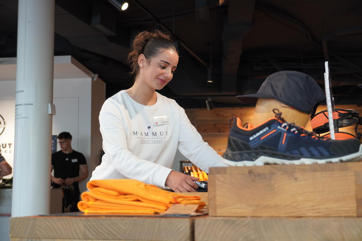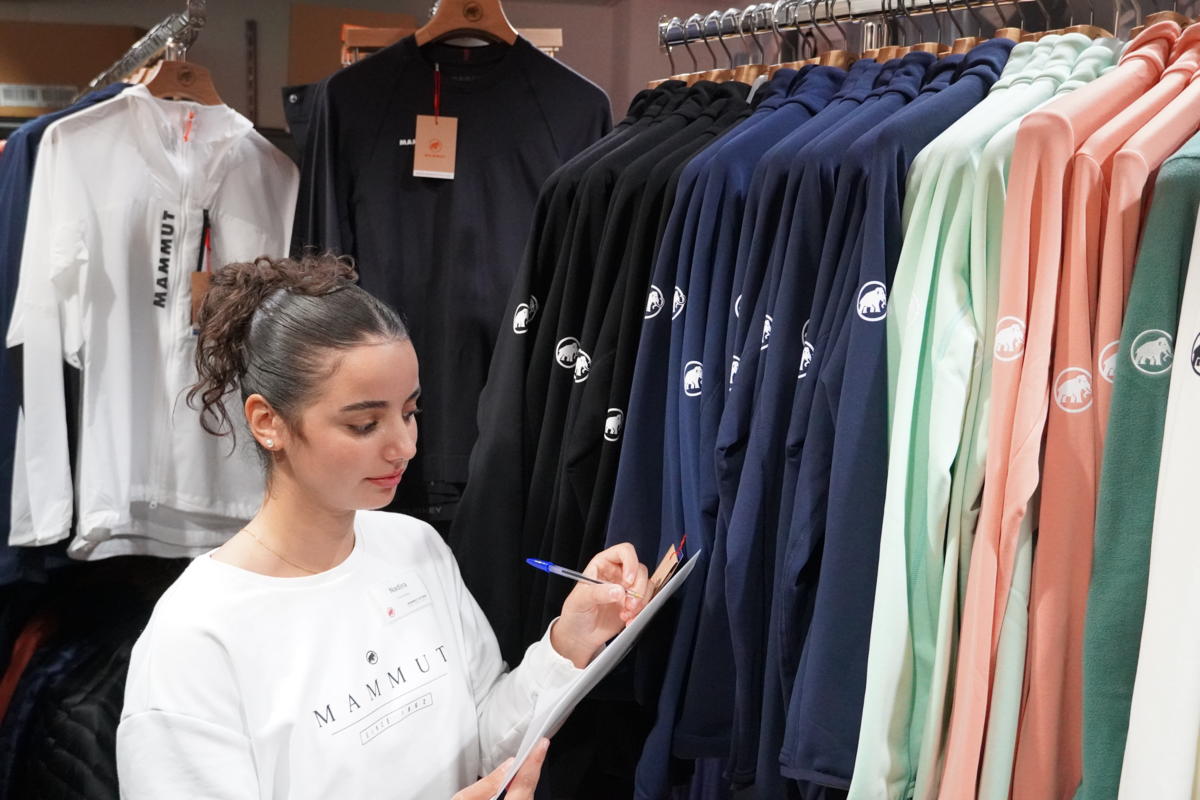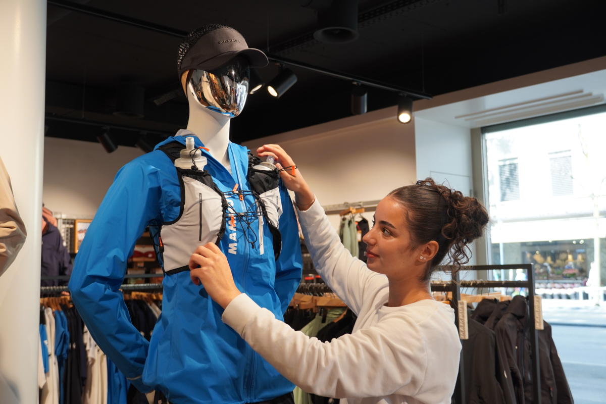 «Nadiras schnelle Auffassungsgabe ist uns bereits nach dem Lehrbeginn aufgefallen. Das Gelernte konnte sie schnell im Arbeitsalltag umsetzen, sie ist zuverlässig und übertrifft unsere Erwartungen, so dass wir Nadira mehr Verantwortung übertragen können», erzählt Michael Pirker, stellvertretender Filialleiter bei Mammut Store Zürich und Nadiras Ausbildner.