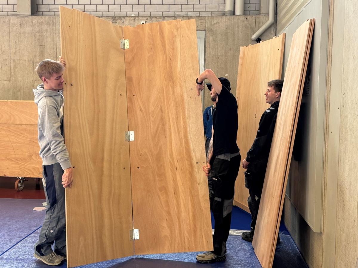 Qualifiziert haben sich acht Talente, für die nun die Regionalmeisterschaft auf dem Programm steht. Bevor es in der Eulachhalle in Winterthur zur Sache geht, heisst es für den Berufsnachwuchs «Messestand aufbauen». Zusammen mit Andri Carigiet und Andrina Stäheli, Verantwortliche für die Regionalmeisterschaft, bringen sie den EBZ-Stand für die Messe für Wohnen, Haus und Garten auf die Beine. In den Pausen wird gefachsimpelt, sich ausgetauscht und gemeinsam getüftelt, denn trotz anstehender Challenge wird der Teamgeist grossgeschrieben.